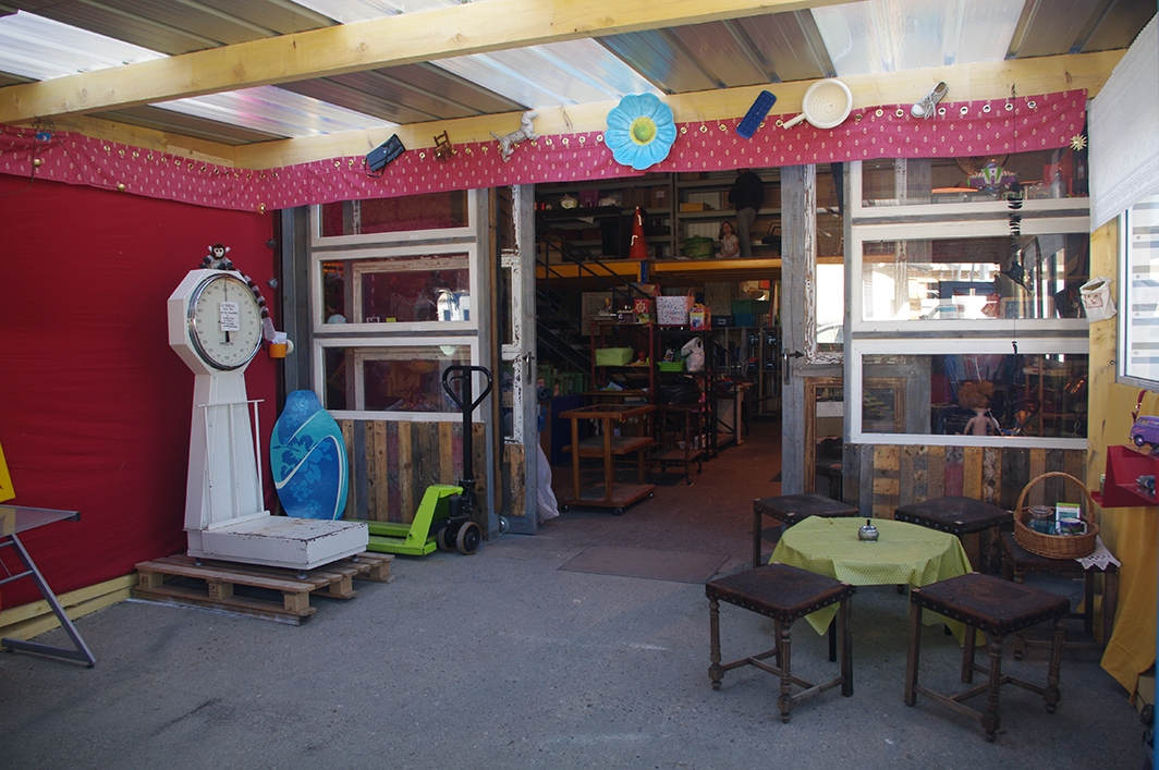 Retrouvez maintenant la porte du magasin, à quelques pas de là : dès son entrée, sur votre gauche, vous pourrez jeter un œil curieux à notre petit espace brocante.